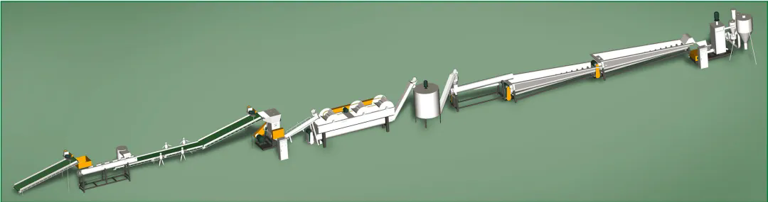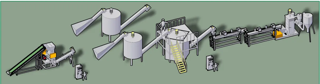 此套生產(chǎn)線有效解決了廢舊薄膜(農(nóng)膜、地膜、包裝膜、垃圾膜等)清洗過程工程量和耗水量偏大的問題,研發(fā)了一套專門針對農(nóng)膜地膜類泥沙含量高的破碎清洗處理線,很大程度的提高了產(chǎn)能,降低了水耗和電耗。整套設(shè)備從拆包到粗碎-除沙-細碎-清洗-脫水-造粒均可全自動化流水生產(chǎn),生產(chǎn)出來的成品顆?;具_到了新料的品質(zhì),廣泛用于吹膜、注塑擠出、回收造粒等領(lǐng)域。